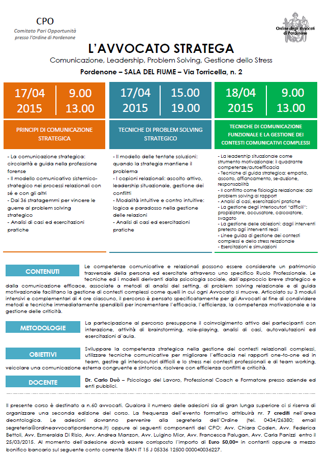 Evento formativo "L'Avvocato stratega" - Pordenone 17-18 aprile