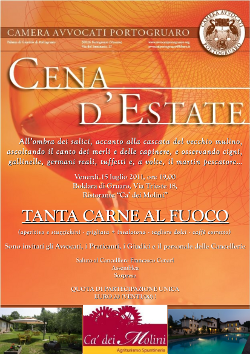 la Cena d’Estate è organizzata per venerdì 15 luglio p.v. – il giorno dell’incontro di aggiornamento “Processo Civile: tutto cambia, niente cambia”, con Relatori l’Avv. Giovanni Molin e il Dott. Andrea Odoardo Comez (*) – presso l’Agriturismo Ca’ dei Molini, a Boldara di Gruaro, Via Trieste n. 18 (http://www.cadeimolini.com) e sarà dedicata, per le ragioni di cui infra, al Cancelliere Cenari.