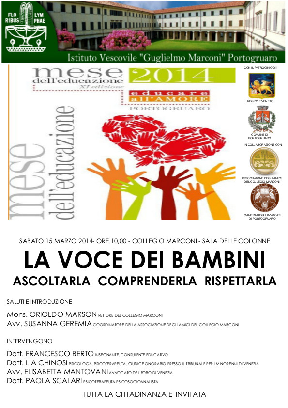 Tutti gli incontri si terranno presso la Sala delle Colonne del Collegio Marconi a Portogruaro, Via del Seminario n. 34, con il seguente orario: 15:30 – 18:30.