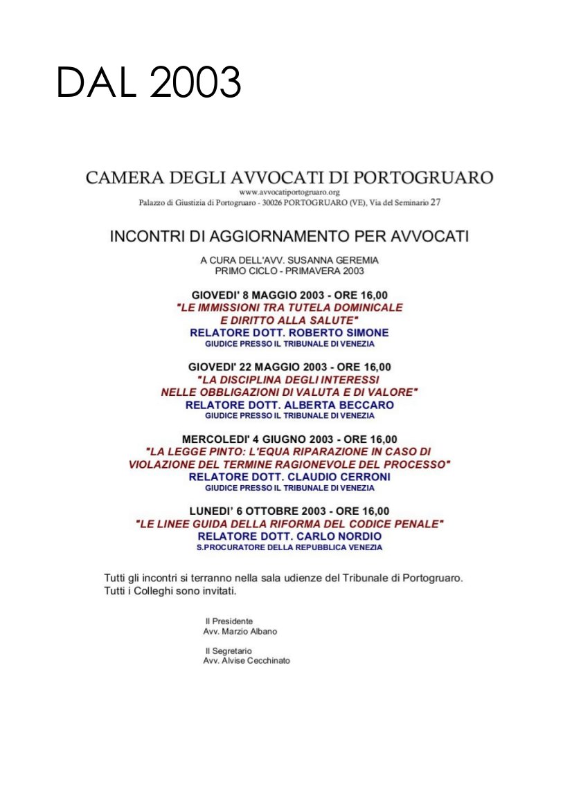 - ricordato che dal 2003 la Camera Avvocati di Portogruaro ha regolarmente organizzato il ciclo di Incontri di aggiornamento, e sinora, da quando è a regime la formazione permanente obbligatoria, l'Ordine Avvocati di Venezia ha sempre concesso l'accredito;