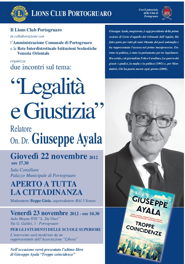 Il Presidente ha riferito dei contatti avuti sia con il Presidente del Tribunale di Venezia Dott. Toppan (telefonate intercorse il 25.10.12 e il 5.11.12 relativamente ai processi penali in Portogruaro) sia con il Presidente del Tribunale di Pordenone Dott. Pedoja (visita agli uffici del 31.10.12; intervento alla cena del 20.11.12 della Associazione Amici di Concordia Sagittaria, su invito del Dott. Lazzaro.