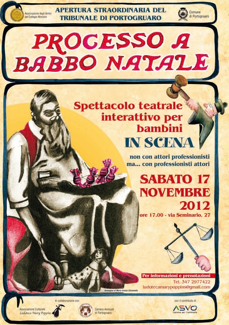 Pubblichiamo la locandina della spettacolo teatrale "Processo a Babbo Natale", un'iniziativa per l'infanzia, inserita nel cartellone delle manifestazioni cittadine della Festa di Sant'Andrea, a cui la Camera degli Avvocati di Portogruaro presta la propria collaborazione.